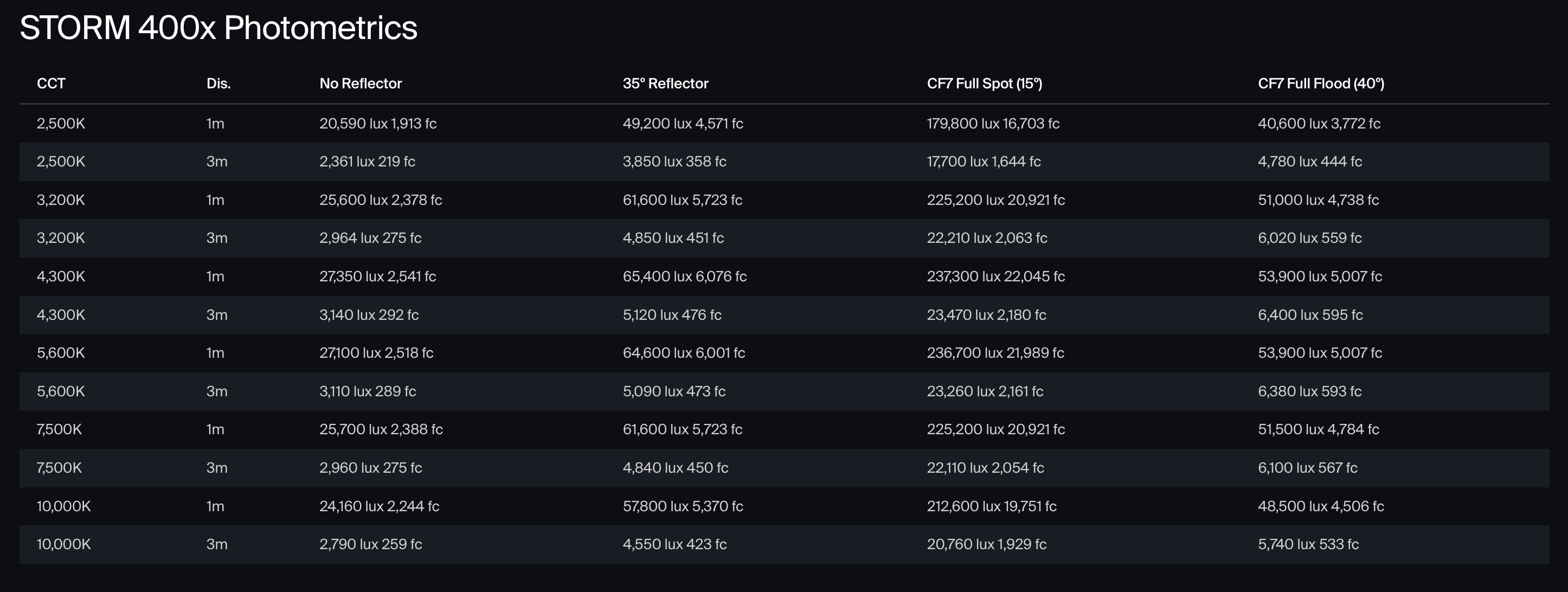 Trots sin kompakta konstruktion matchar eller överträffar STORM 400x ljusstyrkan hos betydligt kraftfullare LED-armaturer.