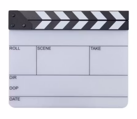 Made with ABS resin sticks and a printed acrylic slate, this clapperboard is durable, lightweight, and weather-resistant. The one-piece glued construction makes it simple, secure, and easy to handle on set.