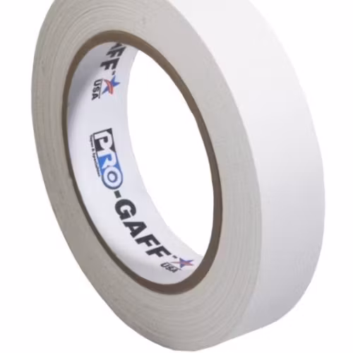 Pro Gaff is a matte cloth tape with a synthetic rubber adhesive system (SRA). Available in 21 colors, making it easy to match any carpet, flooring, or equipment. Featuring 5 high visibility, UV-reactive fluorescent colors, as well as Chroma Green for color keying. Easy to tear by hand and writeable with pens and markers. Pro Gaff contains ZERO polyvinyl chloride (PVC), making it a great alternative to similar PVC coated cloths or vinyl film tapes. Ideal for wire and cable hold down and bundling. Temporary holding of light fixtures and sound equipment. Marking and labeling equipment cases. Labeling audio boards and sound equipment. Marking stages and rigging. Safety marking on stairs, exits, and sets. Labeling in low light environments such as audio booths. Dance floor splicing. Chroma Green color supports color keying. Built for demanding film, TV and broadcast workflows—ideal for camera, lighting and sound departments on set and in studio.