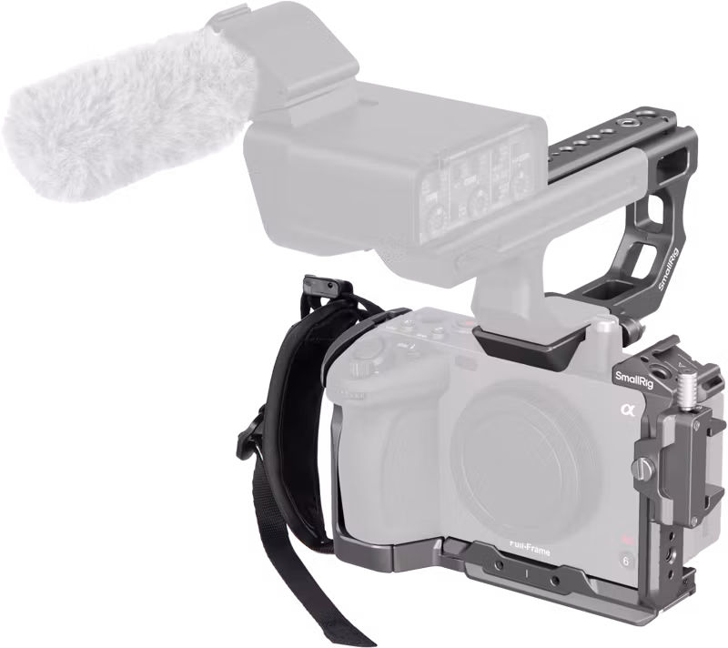 Utformad för att skydda kameran och ge monteringsfästen för tillbehör, vilket förbättrar fotograferingsupplevelsen. XLR handtagsförlängningen är ergonomiskt utformad för att förbättra greppet och styrkan hos det ursprungliga XLR-topphandtaget för enkel expansion av tillbehör. Den dedikerade HDMI-kabelklämman skyddar kabeluttagen för att säkerställa stabil signalöverföring. Handremmen bidrar till ökad stabilitet och säkerhet.